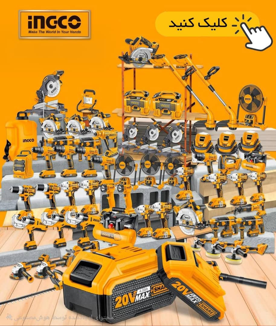پنکه شارژی 20 ولت اینکو مدل CFALI2002 همراه باتری و شارژر۱۰٬۹۰۰٬۰۰۰ 15%