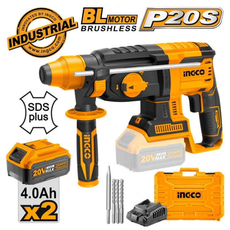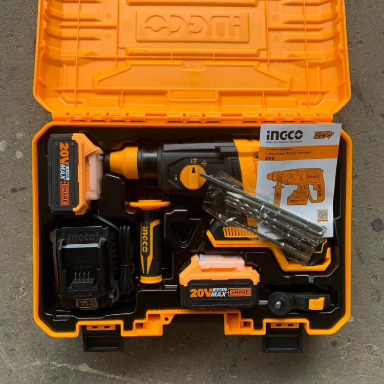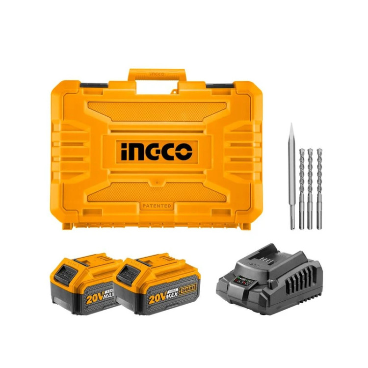 بتن کن شارژی اینکو مدل CRHLI20228 ۴ شیار ۲۰ ولت براشلس همراه با ۲ باتری و شارژر