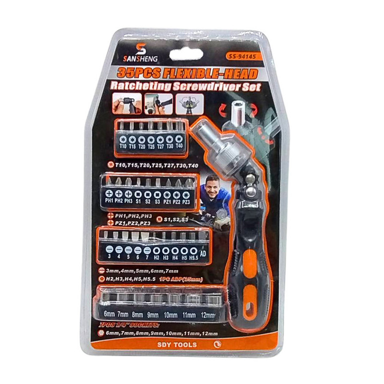 مجموعه 35عددی پیچگوشتی تاشو جغجغه ای سانشنگ دارای 27عدد انواع نوک پیچگوشتی در سایزها و مدل های مختلف ، 7عدد بکس پرمصرف ، قابلیت تاشوندگی پیچگوشتی و قابلیت جغجغه ای میباشد. این مجموعه مناسب برای تعمیرات موبایل ، امور خانگی و امور تعمیراتی میباشد.