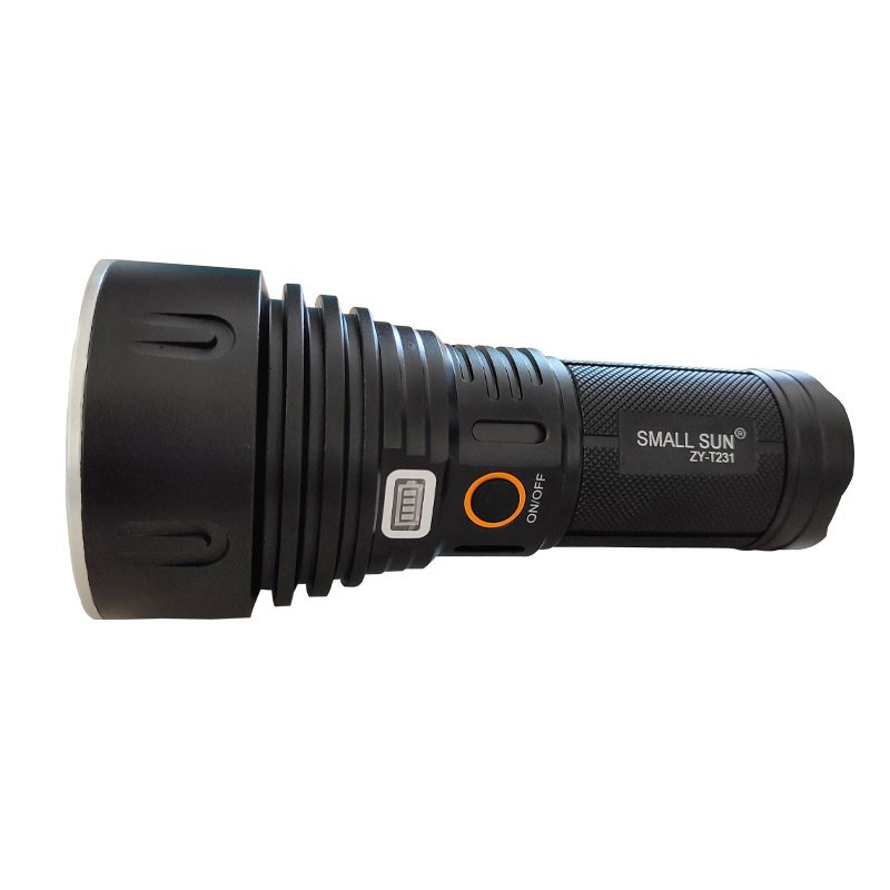 یکی از وسایل ضروری برای کوهنوردی و کمپینگ جهت تامین روشنایی چراغ قوه است که علاوه بر این برای مصارف شکار، نگهبانی و حتی خانگی نیز دارد. چراغ قوه های شرکت اسمال سان از کیفیت ساخت و طراحی های بسیار کاربردی، شیک و جدیدی برخوردارند. یکی از این مدل چراغ قوه ها چراغ قوه پلیسی اسمال سان مدل T231 می باشد که دارای طراحی ارگونومیک بوده و در ساخت آن از آلیاژ آلومینیوم بهره گرفته شده است. این مدل چراغ قوه دارای لامپ بسیار قوی XP60 با قدرت روشنایی 6000 لومن و برد نور 900 متر بوده که نسبت به ابعاد آن بسیار چشمگیر است. این چراغ قوه حرفه ای دارای طراحی بسیار خاص و جدیدی است که از جمله زیباترین و قویترین چراغ قوه های شرکت اسمال سان می باشد. چراغ قوه شارژی T231 همانند سایر چراغ قوه های حرفه ای شرکت اسمال سان دارای بسته بندی بسیار شیک حاوی کیف مشکی برند SMALL SUN به همراه باتری، شارژر، بند دستی خدمت شما دوستان عزیز ارائه می شود. چراغ قوه اسمال سان مدل T231 ضد آب و رطوبت بوده و همچنین دارای بدنه مقاوم در برابر ضربه و خراش می باشد. این چراغ قوه پلیسی از یک عدد باتری لیتیومی اسمال سان با ظرفیت 12800 میلی آمپرک تغذیه می کند که می تواند تا 5 ساعت نور مورد نیاز شما را تامین کند. لازم به ذکر است که چراغ قوه T231 دارای شارژر آداپتور است که به همراه چراغ قوه در اختیار شما عزیزان قرار خواهد گرفت. این چراغ قوه حرفه ای دارای 3 حالت نوردهی پر نور، کم نور و چشمک زن می باشد. همچنین مدت زمان موزد نیاز برای شارژ کامل این دستگاه 5 تا 7 ساعت در نظر گرفته شده است. چراغ قوه پرنور اسمال سان دارای نمایشگر شارژ می باشد که به شکل باتری با چهار خط روی بدنه چراغ قوه نمایش داده شده است.