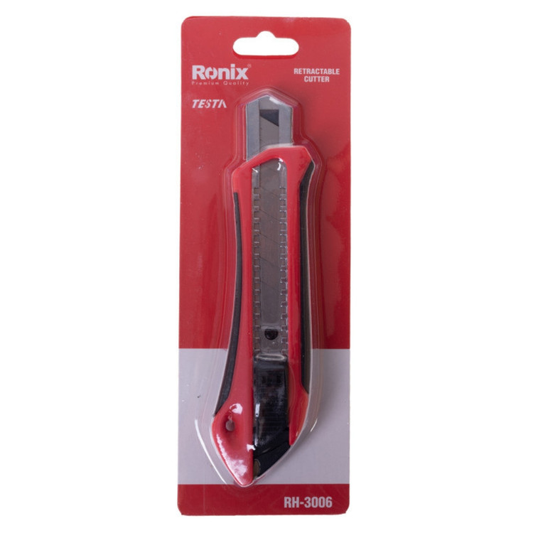کاتر تستا یک تیغ مدل RH-3006 رونیکس، مجهز به تیغه فولادی ضد زنگ است که مقاومت و استحکام بالایی دارد. این ابزار مجهز به دستهای از جنس پلاستیک ABS است که موجب سهولت کاربری آن میشود. پایه نگهدارنده در انتهای دسته به حداکثر گیرایی و ثبات تیغه کمک میکند تا نهایتا بتوانید برشهای دقیقی را ایجاد کنید. در انتهای دسته کاتر تستا، یک سوراخ برای آویزانکردن آن تعبیه شده است.