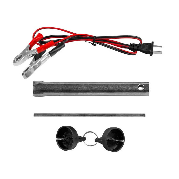 دو عدد دوشاخه برق، یک عدد آچار شمع، یک عدد میله، یک عدد خروجی DC ، دو عدد کلید ، یک ست چرخ و دستگیره