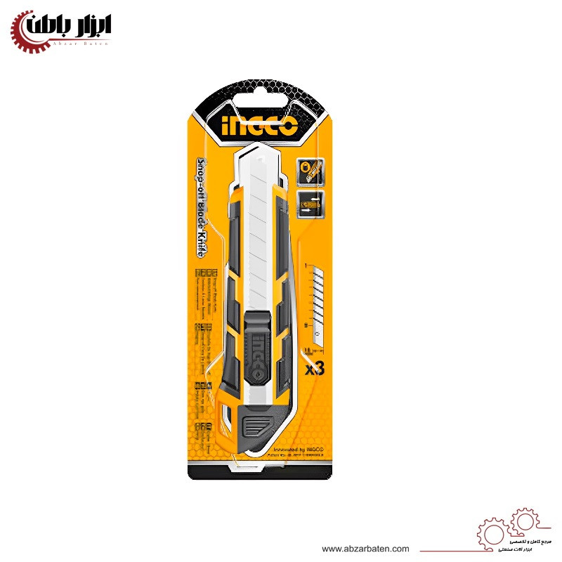 کاتر اینکو مدل HKNS28035 یک کاتر 3 تیغه است که تیغه مناسب آن تیغه 8 تکه قابل شکستن است و بر روی آن 3 عدد تیغه از جنس فولاد SK5 به عنوان اقلام همراه دارد اگر شما به دنبال خرید یک کاتر با کیفیت و قیمت مناسب هستید پیشتهاد تیم کارشناسان ابزار باطن به شما کاتر اینکو مدل HKNS28035 میباشد اگر بخواهیم به بررسی مشخصات این کاتر بپردازیم باید بگوییم جنس بدنه این کاتر از پلاستیک TPR ضد لغزش و ضد تعریق میباشد و مجهز به زبانه روان و محکم است و و دارای دکمه خلاصی برای تعویض راحت تیغه میباشد شما میتوانید برای بررسی بیشتر مشخصات این محصول و مشاهده ویدیو به ابزار باطن مراجعه کنید همچنین شایان به ذکر است این محصول علاوه بر تولید با استفاده از تکنولوژی آمریکا در کشور چین دارای استاندارد CE اروپا نیز میباشد