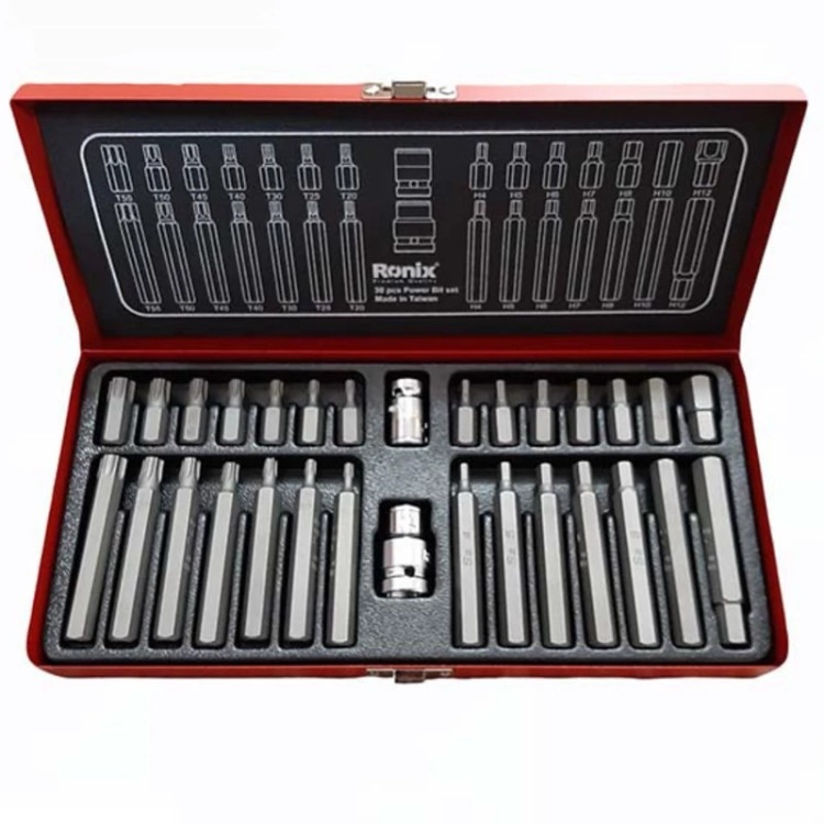 ساخت : تایوانگارانتی : 12 ماهه رونیکس + ضمانت تست 7 روز تاج ابزارجنس : کروم- وانادیوم (Cr-V)سایز درایور : 1/2 اینچ و 3/4 اینچنوع سری ها : ستاره ای و شش گوشمجموعه 30 عددی شامل :بیت کوتاه ستاره ای : T20, T25, T30, T40, T45, T50, T55بیت بلند ستاره ای : T20, T25, T30, T40, T45, T50, T55بیت کوتاه شش گوش : H4, H5, H6, H7, H8, H10, H12بیت بلند شش گوش : H4, H5, H6, H7, H8, H10, H12به همراه دو عدد سری بکس