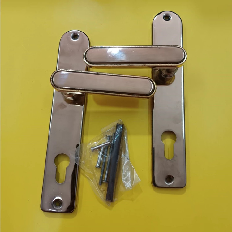 دستگیره درب ورودی طرح دلتا با آبکاری براق و منحصر به فرد مناسب برای دربهای چوبی و آهنی اقلام همراه: میله چهارسو-پیچ توجه: این مدل دستگیره برای قفلهای سوئیچی میباشد و لطفاً در انتخاب دقت فرمایید که قفل شما چه مدل میباشد.