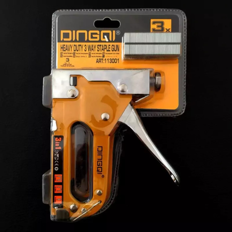 مشخصات کلی وزن 450 g ابعاد 16x11x2 سانتیمتر 450 گرم منگنه کوب دستی DINGQI محصولی فوق العاده است که 3 دستگاه را در یک دستگاه گنجانده است.منگنه کوب و میخ یو شکل و میخ کوب همه در یک دستگاه! این دستگاه علاوه بر منگنه توانایی استفاده از میخ را هم دارا می باشد. توانایی دیگر این دستگاه استفاده از میخ های یو شگل برای نگه داشتن چیز هایی همچون سیم می باشد.طراحی خاص این محصول این امکانات را به این دستگاه می دهد.