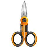 قیچی الکتریکی 5.5 اینچ اینکو مدل HES02855 برای برش دادن و لخت کردن انواع سیم ها با ضخامت های مختلف استفاده می شود. قیچی الکتریکی 5.5 اینچ اینکو مدل HES02855 برای انواع کاربردهای الکتریکی مقاوم می باشد.این قیچی از ابزارهای پر کاربرد در کارهای برق کاری و برش سیم است.در هر لحظه از سیم کشی شما ممکن است که به این قیچی احتیاج داشته باشید .برای برش سیم و سیم لخت کردن ، این قیچی کاربردهای فراوانی دارد و برای برش دادن هر چیزی میتوانید از آن استفاده کنید و برشی با لذت را تجربه کنید.این قیچی دسته هایی با روکش چند جزئی دارد که با فایبرگلاس تقوت شضده است. طول آن 150 میلیمتر بوده و تیغه هایی دارد که با دقت ماشین کاری شده اند و شیارهای بسیار ریزی که بر روی تیغه وجود دارد یک برش تمیز بدون سر خوردگی ایجاد می کند. دارای ناحیه برشی است که بخشی از آن کار برش کابل را انجام میدهد