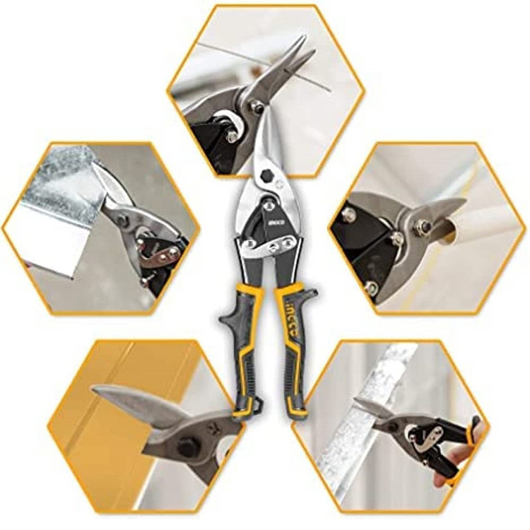 قیچی ورق بر 10 اینچ 250 میلی متری اینکو مدل HTSN0110S جهت برش انواع ورقهای فلزی، ورقهای UPVC، حلقههای سیمی و صفحات آلومینیومی به کار می رود. جنس تیغه های این ابزار از آلیاژ کروم - مولیبدن ساخته شده است که استحکام و مقاومت بالایی در برابر خوردگی،خمش، پیچش، ضربه و رطوبت دارد. مکانیزم اهرم این ابزار به گونه ایست که با کم ترین فشار دست، بیشترین برش را ایجاد می کند و در انرژی دست کاربر بیشترین صرفه جویی می شود. قیچی ورق بر مدل HTSN0110S اینکو یک قیچی قدرتمند و خوش ساخت است که توانایی برش در سه جهت چپ، راست و مستقیم را داراست. تیغه های ضدزنگ این قیچی از آلیاژ فولاد کروم- مولیبدن ساخته شده است که کروم کافی برای افزایش قدرت و مقاومت ابزار را داراست. این تیغه ها که برای افزایش تاثیر و برندگی بیشتر، دندانه دار شده اند، طولی برابر با 50 میلیمتر دارند و دارای یک ضامن قفل فلزی محکم هستند که ایمنی بیشتر ابزار و عمر بیشتر تیغه را به همراه دارد. فکهای این قیچی ورق بر دستی برای افزایش دوام و استقامت در فعالیت های پرفشار صنعتی، سختکاری شده اند و قادرند ورقهای فلزی، ورقهای UPVC، حلقههای سیمی و صفحات آلومینیومی را به خوبی و با دقت بالا برش دهند. ظرفیت برش این قیچی بر روی فولاد کربنی تا 1.2 میلیمتر و بر روی فولاد ضد زنگ استنل استیل تا 0.7 میلی متر است. قیمت قیچی ورق بر دستی اینکو در حد مناسبی است و مکانیزم اهرم این قیچی اینکو به گونه ای طراحی شده تا با حداقل فشار دست، بیشترین برش را بر روی ورق ایجاد کند تا باعث صرفهجویی در مصرف انرژی شما گردد. بدنهی این قیچی نیز دارای سطح اتکای مناسب برای در دست گرفتن است. نکتهی خوب و قابل توجه دربارهی این دستههای این قیچی آهن بر، فنر قوی داخلی آن است که باعث میشود قیچی پس از هر برش به صورت خودکار به حالت اولیه باز گردد و به نوعی دیگر، در مصرف انرژی دست صرفه جویی شود. این قیچی فلز بر که مناسب برای فعالیت پرفشار صنعتی است، دارای دستههای نرم پلاستیک از جنس TPR است که به خاطر ساختار خود، دارای خاصیت ضد لغزش و ضد تعریق است. سوراخی برای آویختن ابزار نیز در انتهای دسته ها در نظر گرفته شده است. اگر به دنبال خرید یک قیچی ورق با کیفیت هستید پیشنهاد تیم کارشناسان فروش فروشگاه اینترنتی ابزار باطن به شما قیچی ورق بر اینکو مدل HTSN0110S است