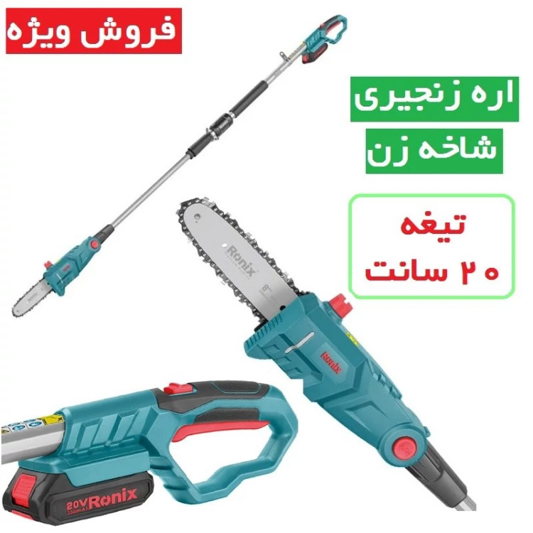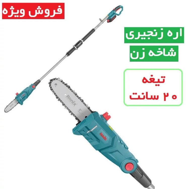 اره زنجیری شاخه زن شارژی 20 سانتی 8602 رونیکس اره تلسکوپی رونیکس