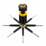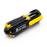 ست پیچ گوشتی 8 تکه مجموعه ای از 8 سری پیچ گوشتی دو سو و چهارسو در ابعاد مختلف تشکیل شده است و قسمت جلویی آن از چراغ های LED تشکیل شده است که یکی از ویژگی های ست پیچ گوشتی 8 تکه همه کاره به حساب می آید و در جاهایی که نیاز به نور دارید گزینه مناسبی می باشد. این ابزار همه کاره دارای 4 عدد چراغ قوه می باشد.انتهای این محصول دکمه ای تعبیه شده است که توسط آن به راحتی می توانید آن را روشن/خاموش کنید.