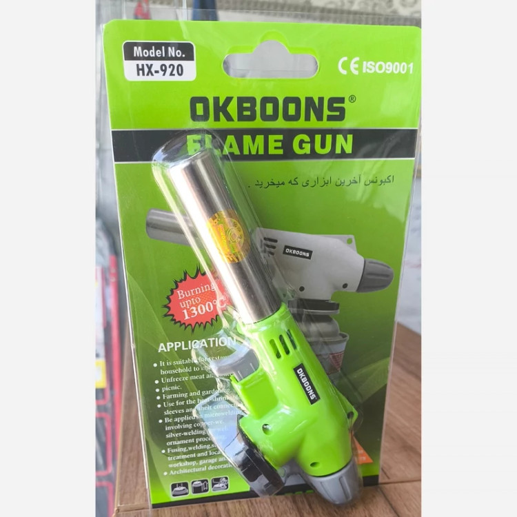 ویژگیهای شعلهافکن پیچ کنترل حجم شعله وزن 200 گرم نوع گاز گاز مایع ابعاد 14*20 سانتیمتر فندک دارد رنگ سبز