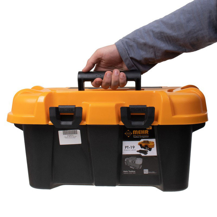 جعبه ابزار پلاستیکی از برند مهر پلاستیک ، یک جعبه ابزار بلند است که از پروپیلن (PP) مقاوم و با کیفیت ساخته شده است. این جعبه ابزار مهر پلاستیک به سایز 19 اینچ است و طولی برابر با 48 سانتیمتر دارد. این جعبه ابزار به دو عدد قفل پلاستیکی با دوام نیز مجهز شده است؛ یعنی زمانی که در جعبه ابزار ، ابزارهای مختلف و سنگین وزن قرار داده اید و درصدد حمل آن هستید ، این قفل ها باز نمیشوند و شما را به دردسر نمیاندازند. 7 محفظه مختلف برای نگهداری انواع ابزار برای این جعبه در نظر گرفته شده است. این 7 محفظه شامل قسمت بزرگ جعبه در قسمت زیرین ، یک سینی قابل حمل به عمق 4 سانتیمتر با 4 قفسه در قسمت بالایی و 2 محفظهی در دار کوچک با عمق 4 سانتیمتر میباشد. دستگیرهی این جعبه ابزار قفل پلاستیکی ، به صورت تاشو و با طول حداکثر 16 سانتیمتر طراحی و بر روی محصول تعبیه شده است. دستگیرهی این جعبه ابزار قفل پلاستیکی ، به صورت تاشو و با طول حداکثر 16 سانتیمتر طراحی و بر روی محصول تعبیه شده است. این جعبه ابزار به شما امکان نگهداری انواع ابزار کوچک و متوسط در محیطهای صنعتی، خانگی، عمرانی و عمومی را خواهد داد. جعبه ابزار بلند قفل پلاستیکی مهر پلاستیک مدل PT-19 سایز 19 اینچ ، به ابعاد کلی 24×34.5×48 سانتیمتر و به وزن 1560 گرم ، ساخت ایران است و تحت ضمانت 7 روزه ابزارلاین قرار دارد.