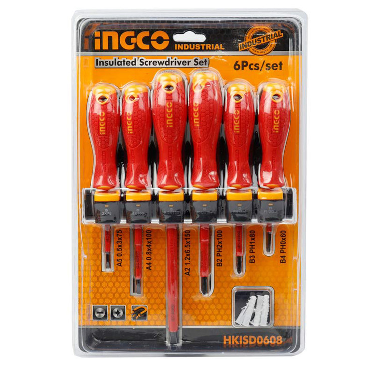ست پیچ گوشتی Ingco مدل HKSD0628 یک مجموعه شش تایی از پیچ گوشتی های مختلف دوسو و چهارسو ساخته شده توسط کمپانی اینکو می باشد که برای مصارف مختلف مورد استفاده قرار می گیرد. این ست دارای سه پیچ گوشتی دو سو و سه پیچ گوشتی چهار سو در سایز های مختلف است، سری های این مجموعه پیچ گوشتی از جنس فولاد کروم وانادیوم با روکش کروم ساخته شده که مقاوم در برابر ضربه، فشار و خوردگی می باشد، علاوه بر آن اینکو سری های این محصول را با قابلیت آهنربایی طراحی نموده است تا کار با آن آسان تر باشد. بدنه دسته های محصول نیز به شکل ارگونومیک از جنس پلاستیک نرم، ضد لغزش و عایق جهت ایجاد راحتی دست کاربر و مقاومت بیشتر تشکیل شده است.