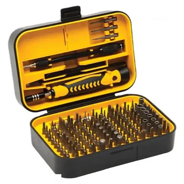 مجموعه سری بیت 130 عددی خاص از برند معتبر KENZAX امکان مغناطیسی و غیر مغناطیسی کردن سری پیچ گوشتی ویژه تعمیرات موبایل، کامپیوتر، ساعت و دستگاه الکترونیکی دارای دسته پیچگوشتی 360 درجه ای برای دسترسی آسان تر سری های ساخته شده از فولاد کروم-وانادیوم با استحکام بالا همراه با بیت های دوسو، چهارسو، سه پر، ستاره ای، آلنی و... نوک سخت کاری شده با سختی 58 راکول C برای دقت بیشتر میله رابط منعطف و رابط کمکی جهت کار در زوایا و فضای محدود جعبه پلاستیکی ساختار یافته + متریال بدنه ابزار از TPR + PP تضمین اصالت و کیفیت با ضمانت سلامت فیزیکی محصول اطلاعات ست سر پیچ گوشتی کنزاکس 130 عددی مدل 9285 به شرح زیر می باشد : سری پیچ گوشتی های سایز 28 میلی متر: 9 عدد سر پیچ گوشتی آلنی شش گوش اینچی به سایزهای H1/16, H5/64, H3/32, H7/64, H1/8, H9/64, H5/32, H3/15, H6 13 عدد سر پیچ گوشتی آلنی شش گوش به سایزهای H0.7(2x), H0.9(2x), H1.3, H1.5, H2, H2.5, H3, H3.5, H4, H4.5, H5 14 عدد سر پیچ گوشتی چهارسو به سایز های PH0000(3x), PH000(3x), PH00(2x), PH0(2x), PH1(2x),PH2(2x) 11 عدد سر پیچ گوشتی ستاره ای سوراخ دار به سایزهای T6H(2x), T7H, T8H(2x), T9H, T10H(2x), T15H, T20H, T25H 14 عدد سر پیچ گوشتی دوسو به سایز های SL1(3x), SL1.3(3x), SL1.5, SL2, SL2.5, SL3, SL3.5, SL4, SL4.5, SL5 6 عدد سر پیچ گوشتی ستاره ای پنج پر به سایز های AP2(3x), AP5(2x), AP6 8 عدد سر پیچ گوشتی سه پر به سایزهای Y000(3x), Y00(2x), Y0, Y1, Y2 8 عدد سر پیچ گوشتی ستاره ای به سایزهای T1, T2(3x), T3, T4, T5(2x) 7 عدد بکس 5 پر به سایزهای M2.5, M3, M3.5, M4, M4,5, M5, M5.5 4 عدد سر پیچ گوشتی چهار گوش به سایزهای SQ0, SQ1, SQ2, SQ3 2 عدد سری پیچ گوشتی چهارسو نقطه ای سوزنی به سایزهای 2 و 2.5 4 عدد سر پیچ گوشتی U شکل به سایزهای U4, U6 ,U8, U10 4 عدد سر پیچ گوشتی مثلثی به سایز های 3.0, 2.6, 2.3, 2.0 4 عدد سری پیچ گوشتی سوزنی به سایزهای 1, 0.8, 0.3, 0.1 3 عدد سر پیچ گوشتی خاردار یه سایزهای PZ0, PZ1, PZ2 2 عدد بکس ستاره ای به سایز های G3.8 , G4.5 1 عدد بیت مادگی چهارسو 1 عدد بیت مگنتی U 1 عدد دیلم/خارکش 1 عدد کاردک سری پیچ گوشتی های سایز 35 میلی متر: 1 عدد سر پیچ گوشتی چهارسو به سایز PH000 1 عدد سر پیچ گوشتی نقطه ای به سایز P2 1 عدد سر پیچ گوشتی سه پر به سایز Y000 تجهیزات جانبی: 1 عدد دسته پیچ گوشتی آلومینیومی 1 عدد مغناطیس کننده 1 عدد غیر مغناطیس کننده