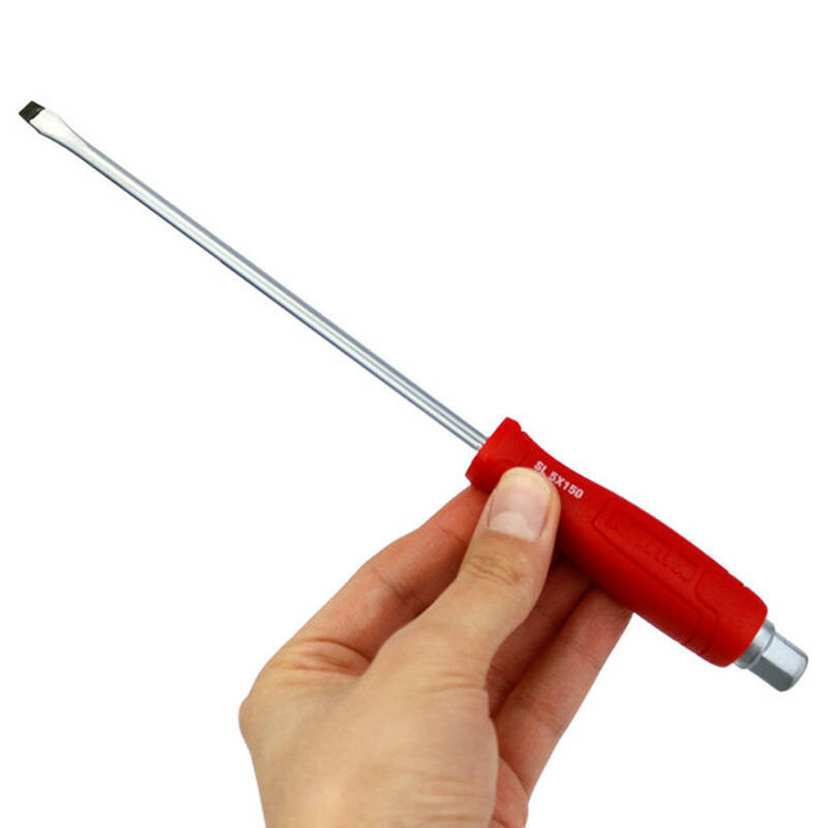 سری آهنربایی و ضربه خور از جنس فولاد کروم وانادیوم در سایز 150x5 میلی متر، مقاوم در برابر فشار و سایش دارای دسته ارگونومیک با روکشی از جنس PVC مناسب برای کاربری های حرفه ای، قسمت آچار خور در بالای دسته