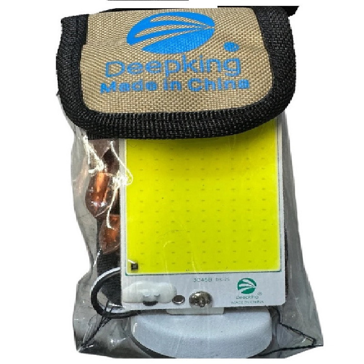 چراغ کمپینگ DeepKing مدل DK-25 COB 13W با استند آهنربایی دارای پنل نور سفید برای روشن کردن محیط میباشد و همچنین در برابر شوک و لرزش نیز مقاوم میباشد. خرید چراغ کمپینگ تجربه خریدی کارآمد برای شما فراهم میسازد. نورپردازی آن به صورت تمام صفحه سفید رنگ طراحی شده است. این چراغ کمپ، دارای ولتاژ ورودی 12 ولت برق مستقیم (DC) میباشد و توان مصرفی آن تقریبا 13 وات ارزیابی شده است. نور این چراغ، اگر در ارتفاع بالایی مانند سقف ماشین قرار داده شود، تمام محیط اطراف را برای شما روشن میکند. چراغ کمپینگ با استند آهنربایی میتواند در خانه، محل کار، در مشاغل کشاورزی، فضاهای صنعتی و بازار شبانه و دورهمیهای خارج از منزل و … استفاده شود. همچنین میتوانید به عنوان روشنایی اضطراری نیز از آن بهره ببرید. پنل نوری این محصول دارای صفحه متشکل از لامپ COB با میزان روشنایی 3000 لومن گزارش شده است. طول عُمر مفید این پنل بیش از 30000 ساعت میباشد. پایه این محصول یک استند آهنربایی از جنس آلیاژ آلومینیوم است.