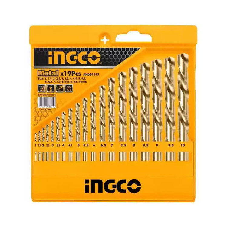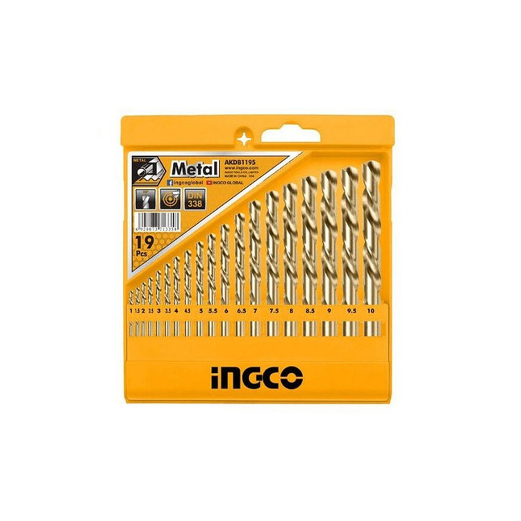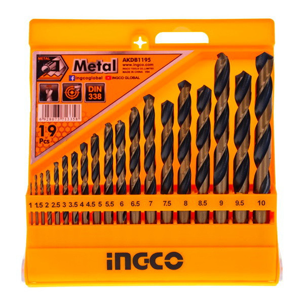 مته آهن با پرکابردترین مته های موجود برای سوراخکاری است. ست 19 عددی مته کبالت اینکو مدل AKDB1195 از 19 مته کبالت در سایزهای مختلف 1، 1.5، 2، 2.5، 3، 3.5، 4، 4.5، 5، 5.5، 6، 6.5، 7، 7.5، 8، 8.5، 9، 9.5 و 10 میلیمتر تشکیل شده است. این ست مته کبالت از سایز 1 میلی متر با افزایش 0.5 میلیمتر در هر مته تا سایز 10 میلی متر میرسد. متههای این مجموعهی اینکو، از ترکیب فولاد تندبر (High Speed Steel) با 5 درصد کبالت (Co) ساخته شدهاند که به این ترکیب اصطلاحا فولاد تندبر کبالتی (M35) اطلاق میشود. فولاد تندبر کبالتی باعث میشود ابزار در برابر سرعت بالای کاری و حرارت ایجاد شده در حین کار مقاومت بیشتری از خود نشان دهد. این نوع از متهها، از پرکاربردترین متههای صنعتی هستند و عموما برای سوراخکاری انواع آلیاژهای چدن، آهن، فلز و فولاد در کارهای تاسیساتی، ساختمانی و عمرانی از آنها استفاده میشود. هر مته HSS اینکو شیارهای مارپیچ دقیق، عمیق و تیزی دارد که میتواند به خوبی در سطح کار فرو رود. ضمن اینکه به خاطر داشتن این حالت، برادهها به خوبی و به راحتی از درون شیارها خارج میشوند. مزیت دیگر شیارهای مارپیچ این است که لبههای آن عمر نسبتا بلندی دارند و دیر سابیده و کند میشوند. مته کبالت دار اینکو دارای سری N شکل با زاویه برش 118 درجه است. این زاویه کمک میکند که مته با قدرت مناسبی سطح کار را سوراخ کند. ویژگی بعدی این ست مته مربوط به سیستم متهگیر آن است که از نوع ساده، استوانهای و مرسوم است و میتوان آنها را به راحتی بر روی اکثر دریلها نصب کرد. این ابزار حایز استاندارد DIN 338 است و دوام و عمری طولانی خواهد داشت. در نهایت باید گفت که مته اینکو درون یک جعبه نگهدارنده پلاستیکی قرار گرفته و محصول کشور چین است. این جعبه در برابر ضربه مقاوم است، امکان قفل شدن دارد و میتوان آن را از دیوار یا هر جای دیگری آویخت. ابعاد این بسته بندی 1.3 × 15 × 16 سانتیمتر و وزن کلی آن 430 گرم است.