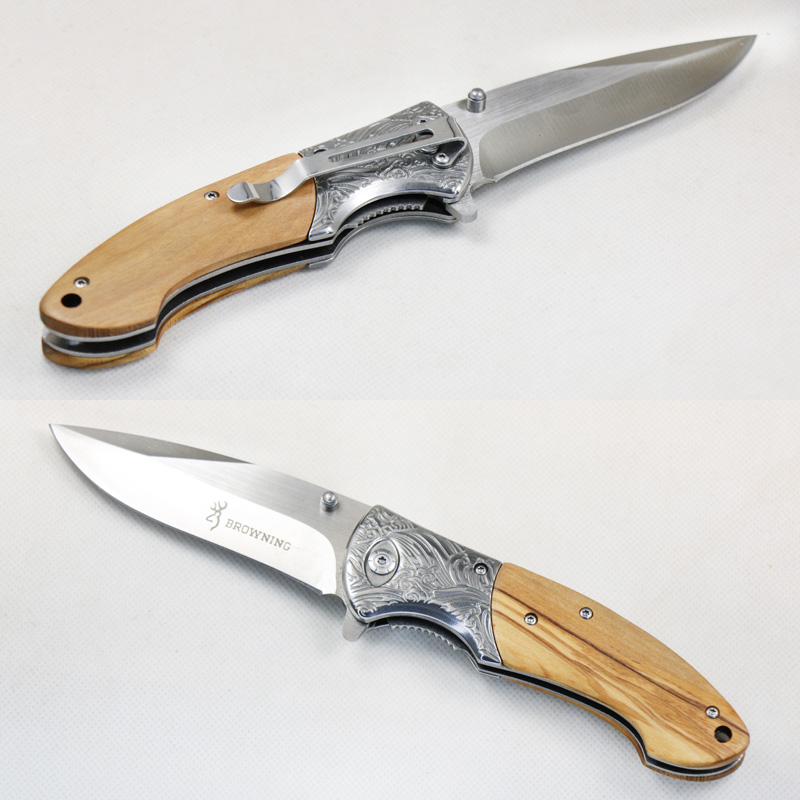 چاقو تاشو جیبی دسته چوبی ضامن دار برونینگ Browning