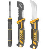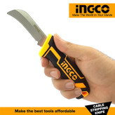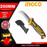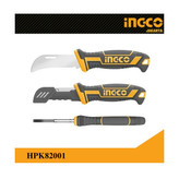 چاقو کابل بری اینکو مدل HPK82001 ساخت کشور چین و تحت لیسانس آمریکا میباشد که کاربردی صنعتی داشته و نیز دارای شناسه ی ثبت اختراع میباشد. از این چاقو جهت برش و روکش برداری کابل ها و سیم ها در فعالیت های برقکاری استفاده میشود که ابعادی برابر 20×3.5×2.7 سانتی متر با وزنی معادل 94 گرم را دارا است. تیغه ی این محصول از استیل ضد زنگ 3CR14 ساخته شده است و دارای طولی برابر 8سانتی متر و ضخامت 0.3 سانتی متر است. تیغه ی فولادی این چاقوی برق کاری بسیار تیز بوده که همین مزیت باعث برش سریع و سهولت انجام فعالیت های مربوطه میشود. دسته ی چاقو برقکاری اینکو از پلاستیک TPR ساخته شده است که علاوه بر خوش دست بودن و نرم بودن دسته ،باعث عدم لغزش چاقو در دستان کاربر خواهد شد. ناگفته نماند دسته های این محصول بصورت عایق برق میباشد. همچنین تیغه ی چاقو دارای یک قاب پلاستیکی است که جهت حفظ تیغه و ایمنی شما عزیزان طراحی شده است. چاقو روکش بر اینکو مدل HPK82001 در بسته بندی با ابعاد 26×10×2.9 سانتی متر با وزنی معادل 110 گرم به بازار عرضه داده شده است.